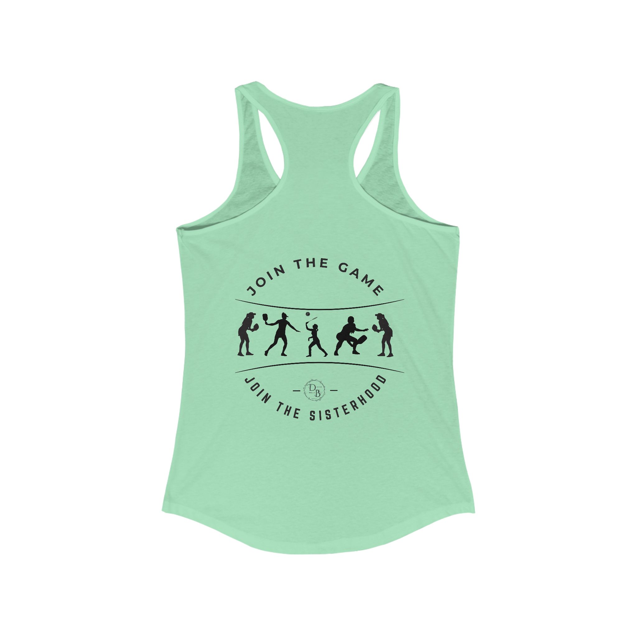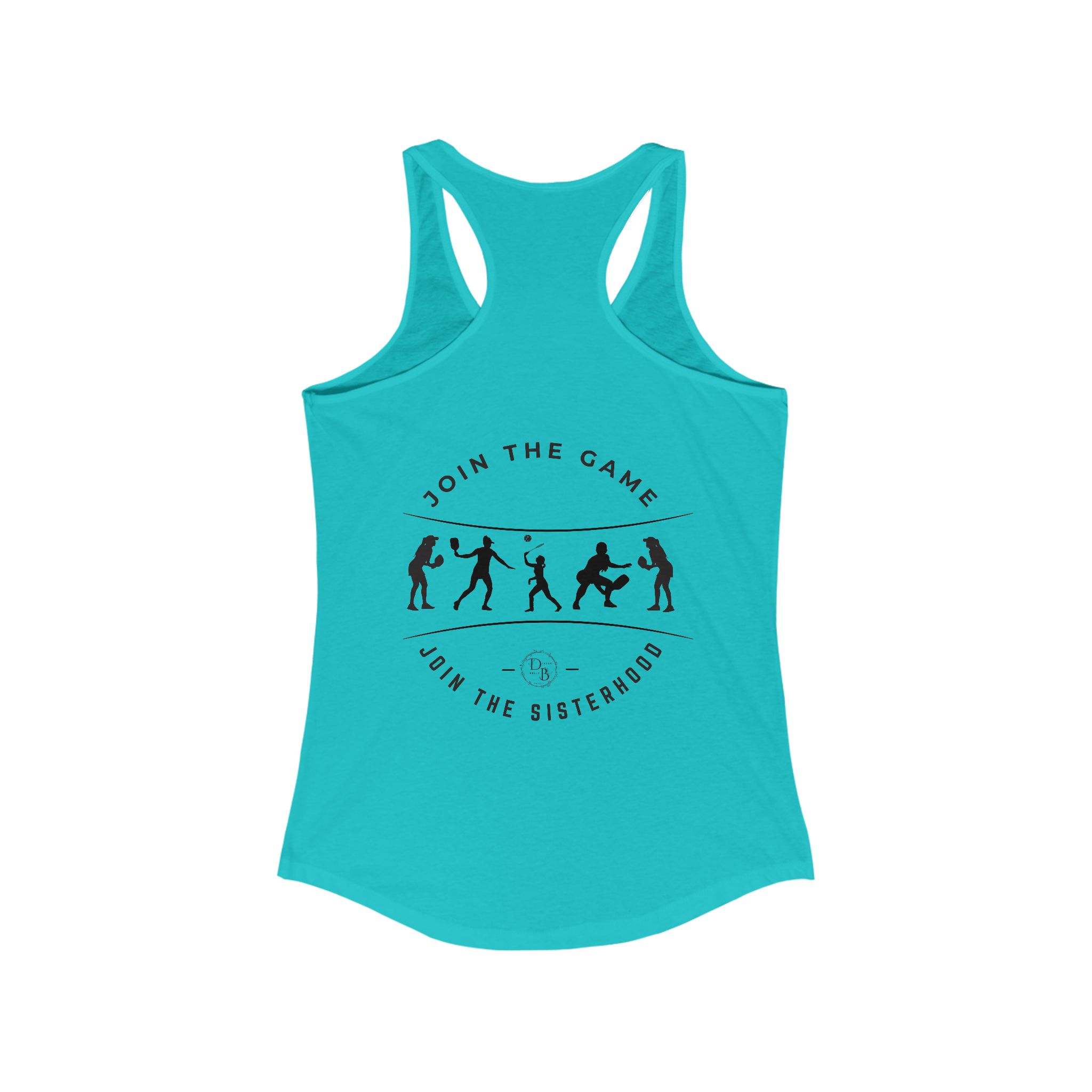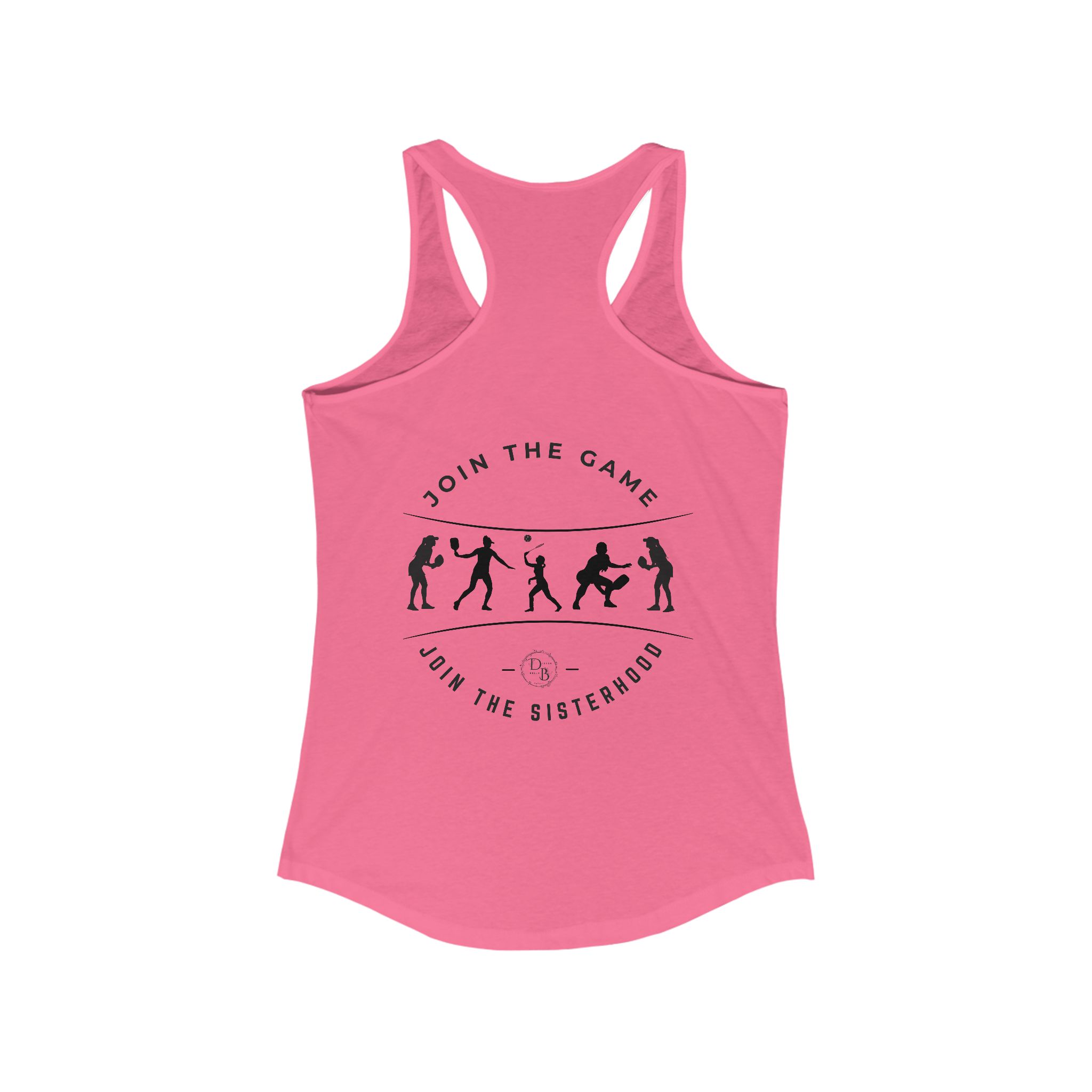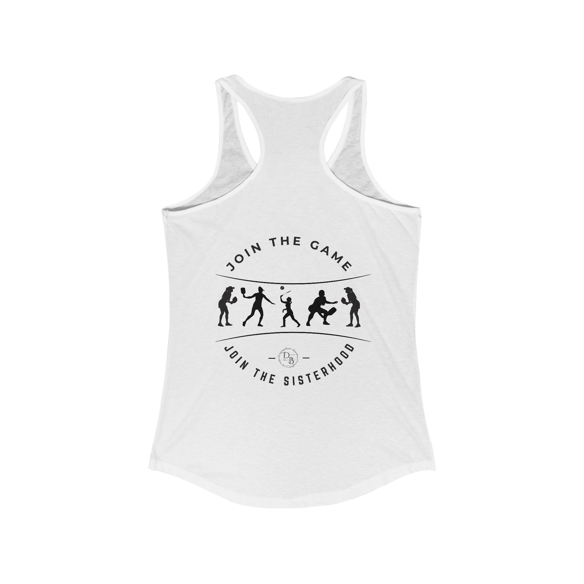 This racerback tank with white lettering design exudes a sporty and energetic vibe, perfect for active women. Ideal for pickleball enthusiasts, this tank is lightweight and comfortable, making it a great choice for workouts or casual wear. Suitable for women who enjoy sports and outdoor activities, this tank is relevant for summer, sports events, and casual gatherings.