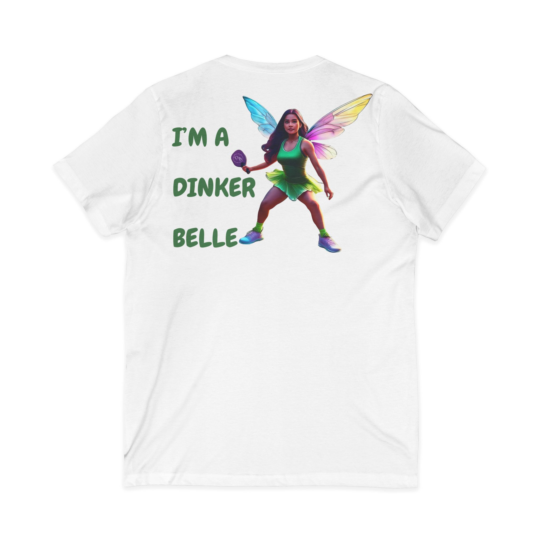 Official Dinkerbelle – V-Neck Tee with White G1 Fairy Pickleball